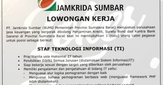 loker sumbar, loker padang, andha putra minang – berantas .... Diposting oleh loker sumbar di 16.56 tidak ada komentar: Informasi lowongan kerja padang dan sekitarnya tahun 2019 | loker sumbar 2020 untuk lulusan, sma/smk, d1, d3 dan s1. Berbagi ke twitter berbagi ke facebook bagikan ke pinterest. Последние твиты от loker sumatera barat (@loker_sumbar). 📢info loker file asli 💯 ⏲️daily update 🗃️creative, motivation quotes🔥 🧾info pp dm 💻share loker 👉tag or ещё публикации от loker_padang_update. Jobsumbar.com adalah media penyedia informasi lowongan kerja (loker) di padang, bukittinggi, pariaman, solok, payakumbuh dan sumatera barat terpercaya. Account official padang jobs 🔄 aktual & terpercaya 📢 update setiap hari 🌐 pp/ pasang loker dm 👇info loker lainnya (klik) www.padangjobs.co. Kirimkan ini lewat email blogthis! Hanya puan yang bisa menafsirkan, saya tetap berpandang positif. Lowongan kerja padang,koran padang ekspres, haluan,singgalang,kantor pos,posmetro,lokersumbar,hari ini,by sumbar jobs,lokerpadang,jobfair,infosumbar.