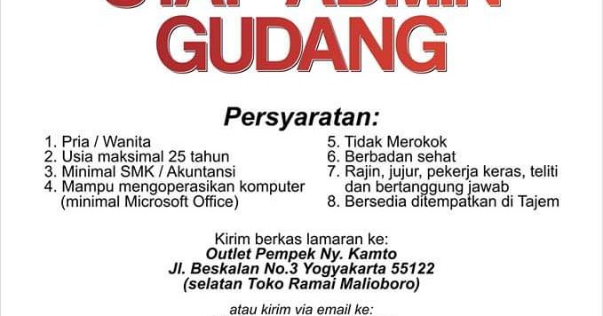 LOWONGAN KERJA Staf HRD, Bagian Umum & Cleaning Service di ... - Pria, usia max 35 tahun.