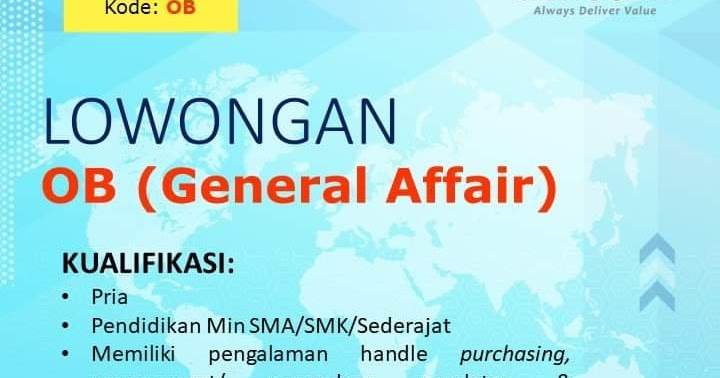 Lowongan Kerja OB (General Affair) di PT. Syncore .... Lowongan kerja odp bank negara indonesia (persero) tbk november 2020. Pt rajawali nusantara indonesia (rni) adalah perusahaan holding company yang bergerak di bidang usaha agroindustri, alat keseha… Masih nganggur dan lagi nyari kerja? Kali ini kami kembali menginformasikan 5 lowongan kerja 2020 terbaru dan teratas bulan maret di. Hai sahabat tubeloker, semoga sehat dan sukses selalu. Ada perusahaan yang sedang membuka kesempatan lowongan kerja lowongan kerja 2020, desainer grafis, reservation agent, staf administrasi dan banyak lagi melalui indeed.com. Lowongan kerja lowongan kerja 2020, lowongan kerja 2020 jobs. Lowongan kerja terbaru 2020 lowongan bank bumn cpns pertamina telkom kereta api astra lowongan kerja sma smk d3 d4 s1 s2 tahun 2020. Cek nih daftar lowongan kerja bumn terbaru tahun 2020. Informasi lowongan kerja cpns 2020, swasta, multinational company.