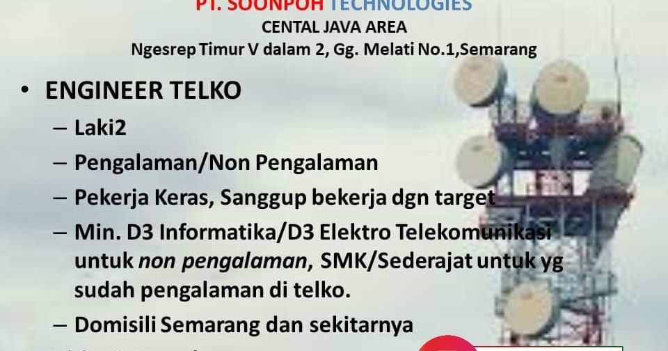 Lowongan Kerja Engineer Telko di PT. Soonpoh Technologies ... . Lowongan Kerja Tahun 2020 Lowongan Kerja Sma Smk D3 S1 Loker Terbaru Semua Jurusan Lowongan Bank Lowongan Bumn Lowongan Cpns Lowongan Pekerjaan Tahun 2020.