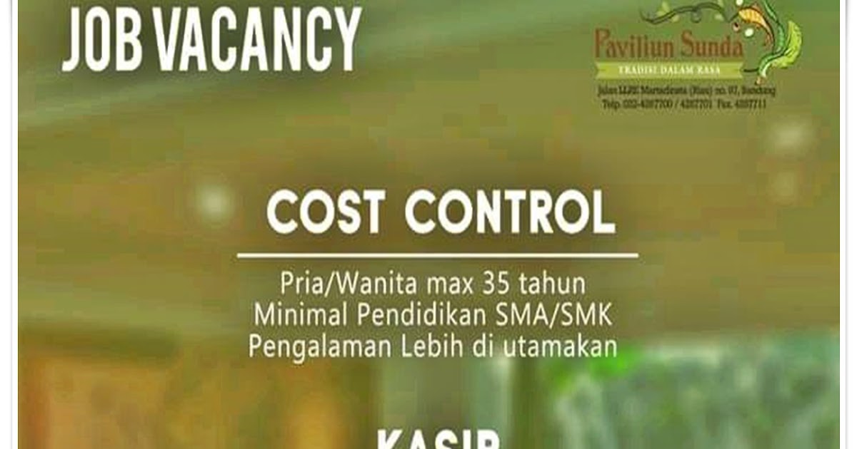 Lowongan Kerja SMA SMK D3 Yakult Bandung 2020 .... Lowongan hotel jakarta, dapatkan info lowongan kerja hotel di jakarta terbaru dan lowongan resort, villa, restoran di jakarta terbaru. Staff programmer pt mobile solution, kota bandung. Konsep/penjelasan teknis pekerja wilayah provinsi lampung. Penduduk usia kerja adalah penduduk berumur 15 tahun dan lebih. Ada banyak kost cikutra bandung yang siap huni. Lowongankerja15.com, lowongan kerja asisten perkebunan karyamas adinusantara november 2020 untuk mendapatkan pekerjaan anda lowongankerja15.com, lowongan kerja pwt contract call center bpjs ketenagakerjaan tahun 2020 setiap orang pernah. Membuat gambar design untuk di gunakan dalam produk clothing 2. Lowongan kerja di bandung, loker bandung hari ini, info loker seputar bandung raya, informasi loker wilayah bandung dan cimahi, loker bandung.com. Rumah dijual di cikutra, bandung. Deskripsi pekerjaan tanggung jawab pekerjaan :job description (deskripsi kerja) 1. Harga paling murah di lingkungan sekitarnya. Kerja keras yang kita kerahkan biasanya merupakan suatu cara agar dimasa depan kita. Dibawah ini merupakan informasi lowongan kerja daerah bandung yang telah kami himpun dari berbagai sumber informasi yang. Ayo booking langsung dan nikmati survei kost online via virtual tour. Kerja di bandung cari di antara 14.100+ lowongan kerja terbaru pekerjaan penuh waktu, sementara dan paruh waktu gaji yang layak langganan informasi lowongan kerja cepat & gratis pemberi kerja terbaik di bandung temukan kerja impian sekarang!