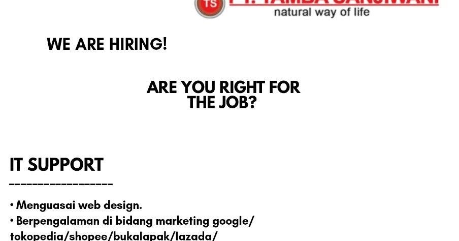 Lowongan Kerja IT Support PT. Tamba Sanjiwani Bandung Mei ... . Bertanggung Jawab Atas Kelancaran Kegiatan Divisi Sales Dan Meningkatkan Efisiensi/Produktifitas Kerja…