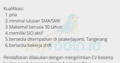 Mari kita saling membagikan informasi seputar lowongan kerja kotamobagu dan sekitarnya. Saai ini indomaret sedang membuka peluang karir untuk tingkat pendidikan sma/smk yang nantinya akan ditempatkan di indomaret area jakarta utara, jakarta pusat dan jakarta timur. Menyerahkan foto copy ijazah terakhir legalisir/ surat keterangan lulus. Info lowongan kerja part time, info lowongan kerja part time daerah jakarta selatan, info lowongan kerja part time di jakarta, info lowongan kerja. Ada perusahaan yang sedang membuka kesempatan lowongan kerja smp,tanpa ijazah,jaga toko, remedial staff, helper, koki dan banyak lagi melalui indeed.com. Lowongan kerja terbaru jakarta sma/smk smp via online/website. Lihat informasi lowongan kerja jakarta terbaru hari ini di mamikos.com. Lowongan kerja aceh terbaru 2020 minimal ijazah smk di pt medco e&p malaka (blok a) kabupaten aceh timur. Pt mukti abadi sadaya merupakan perusahaan yang bergerak di bidang man power atau sumber daya manusia yang berdiri sejak 2 juli 2014 di jakarta. Pt mass rapid transit jakarta (pt mrt jakarta) berdiri pada tanggal 17 juni 2008, berbentuk badan hukum perseroan terbatas dengan mayoritas saham dimiliki oleh pemerintah provinsi dki jakarta (struktur kepemilikan: Memiliki sim a atau b 1 yg masih berlaku. Semua kerja lulusan smk di jakarta. Lowongan kerja 2020, loker 2020, job fair, bursa kerja, lowongan kerja pabrik, lowongan kerja sma smk, kerja bumn, lowongan kerja part time pendaftaran calon pegawai negeri sipil pasti selalu menarik perhatian banyak orang. Lowongan kerja bumn & jakarta. Bentuk kelembagaan transjakarta saat ini adalah badan layanan umum (blu) yang berada di bawah pengawasan dinas. Tanpa ijazah cari di antara 14.000+ lowongan kerja terbaru di indonesia dan di luar negeri gaji yang layak pekerjaan penuh waktu.mendaftar untuk pengiriman lowongan kerja kami dan mendapatkan pekerjaan baru sesuai dengan kebutuhan anda dari lebih dari 7180 situs lowongan. Lowongan kerja pt mass rapid transit jakarta. Cari lowongan terbaru di indonesia, temukan listing lowongan terbaru hanya di olx pusat lowongan terlengkap di jakarta utara. Lowongankerja15.com, lowongan kerja bumn pt bank negara indonesia (persero) tbk tingkat sma smk d3 kesuksesan dalam dunia kerja ditentukan. Memiliki kendaraan bermotor roda 2 ( motor ). Ayo buruabn siapkan lamaran kalian dengan. Info lowongan kerja dang pke ijazah smk. Menyerahkan foto copy ktp dan kk (1 lembar). Info lowongan kerja jakarta oktober 2020. Fotocopy kartu tanda penduduk (ktp) yang masih berlaku; Lowongan kerja terbaru 2020 lowongan bank bumn cpns pertamina telkom kereta api astra lowongan kerja sma smk d3 d4 s1 s2 tahun 2020. This account has been suspended. Info lowongan kerja terbaru 2020 untuk lulusan sma smk d1 d2 d3 s1 semua jurusan 📱👉 0878 4828 7633 (iklan wa only) lowonganterpadu.com. Gunakan ijazah untuk melamar sesuai dengan formasi dan kualifikasi pendidikan yang dipersyaratkan. Ratusan iklan lowongan kerja jakarta terbaru untuk lulusan sma, d3, s1, freshgraduate, freelance, part time, full time ditayangkan setiap harinya. Demikianlah informasi lowongan kerja terbaru juni 2014 staff pajak jakarta,semoga dapat bermanfaat bagi anda semua.