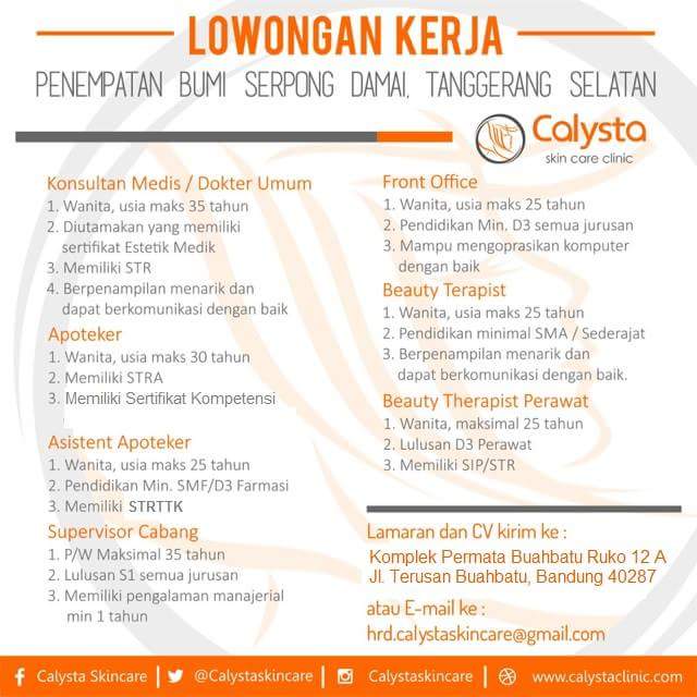 Info Lowongan Kerja di Klinik Calista Skin Care Bandung ... , Website Lowongan Kerja Di Tegal, Slawi, Pemalang, Berebes.