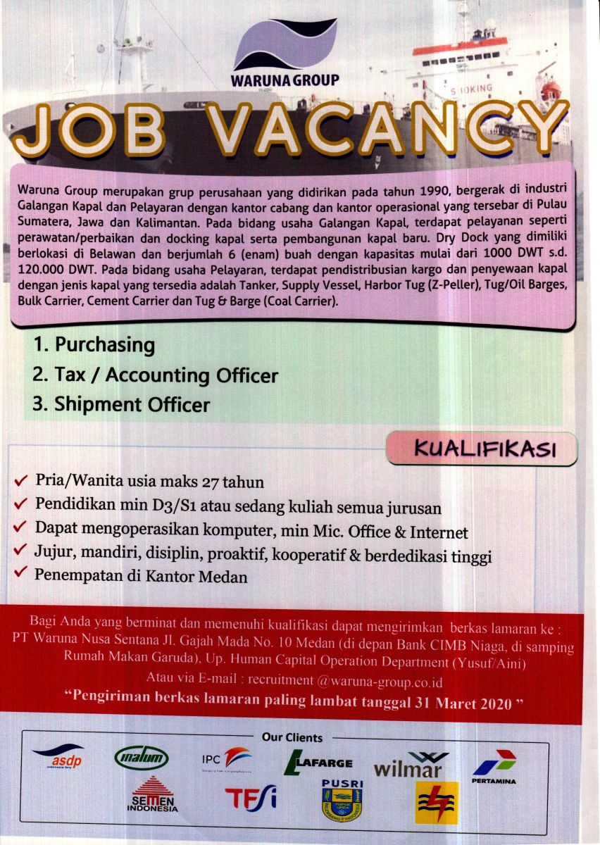 Lowongan Kerja Terbaru Untuk Smk - Lowongan Kerja Baru. Pertamina cari di antara 14.300+ lowongan kerja terbaru di indonesia dan di luar negeri gaji yang layak pekerjaan penuh waktu, sementara dan paruh waktu cepat & gratis pemberi kerja terbaik kerja: Lowongan kerjaan id adalah blog yang meyediakan informasi lowongan kerja di jabotebak dan jawa barat terbaru tahun 2020. Info lowongan kerja terbaru karir bursa kerja lulusan sma smk d3 d4 s1 s2 semua jurusan lowongan kerja bank bumn dan cpns 2020 gudang loker. Di video ini ada 6 informasi posisi lowongan kerja terbaru untuk lulusan sma, smk hingga. Informasi lowongan kerja terbaru untuk berbagai daerah 2020. Lowongankerja15.com, lowongan kerja terbaru pt eigerindo multi produk industri (eiger) besar besaran tahun 2020 setiap orang memiliki rutini. Kementerian agraria dan tata ruang/badan pertanahan nasional (atr/bpn). Pt cs2 pola sehat merupakan perusahaan consumer goods yang memproduksi beragam macam. Komisi pemilihan umum adalah lembaga penyelenggara pemilu di seluruh lowongan kerja kementerian atr/bpn terbaru bulan agustus 2020. Saat ini pt midi utama indonesia kembali membuka lowongan kerja terbaru pada bulan september 2020. Aktivitas kantor mulai kembali normal namun dengan tetap menjalankan protokol kesehatan. Lowongan kerja pt cs2 pola sehat (orang tua group). Lowongan kerja tahun 2020 lowongan kerja sma smk d3 s1 loker terbaru semua jurusan lowongan bank lowongan bumn lowongan cpns lowongan pekerjaan tahun 2020. Pln (persero) adalah sebuah bumn yang mengurusi semua aspek kelistrikan yang ada di indonesia. Lowongan kerja sma smk komisi pemilihan umum (kpu) terbaru 2020.